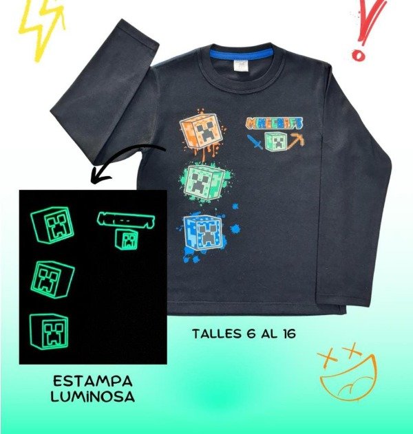 Remeras manga larga algodón calidad premium , con estampa que brilla en la oscuridad